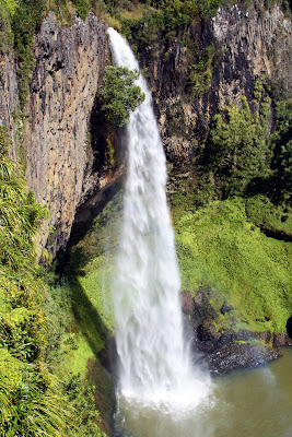 La montée est raide, et on comprend dès les premiers mètres d’où vient la corpulence massive des Maoris, ces guerriers qui peuplaient le pays avant l’arrivée des anglais. La montée s’effectue sur un sentier étroit, dans la jungle, au son des “glouglous” des oiseaux et opossums.